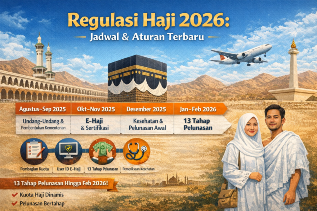 Pemerintah telah merilis berbagai regulasi penting terkait penyelenggaraan haji 2026 (1447 Hijriah). Aturan ini mencakup proses pendaftaran, pelunasan, kuota, hingga teknis keberangkatan jemaah haji khusus.